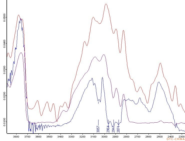 图2 3057cm-1、2964 cm-1、2947 cm-1、2874 cm-1的吸收峰