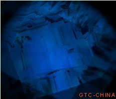图4: DiamondView下天然钻石荧光图案(蓝色荧光,非常复杂的生长区模式图,反应生长环境的变化)