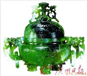 翡翠龙纹环耳盖炉(局部)
