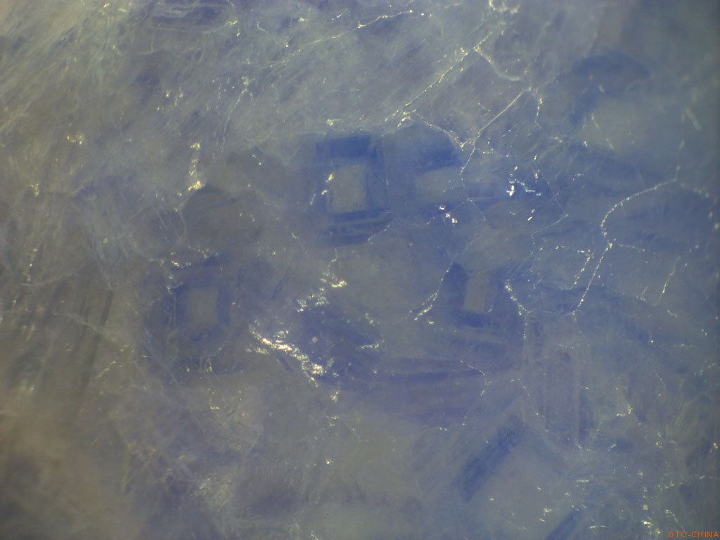 翡翠中的紫色,俗称春。颇显神秘,以下是显微镜下拍摄到的一组紫色分布图,以供欣赏。 与浅绿色分界较清晰 蓝紫色区域,矿物颗粒粗大,具纤维状结构;蓝紫色与浅绿色分界清晰 蓝紫色分布区域,质地粗 蓝色紫区域内可见自形程度很高的矿物颗粒,这些矿物颗粒
