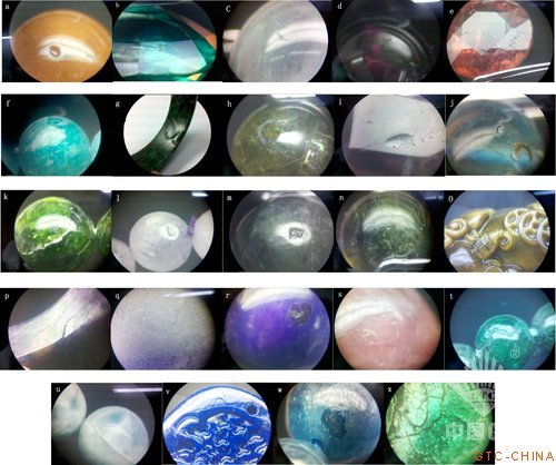 综上所述,广州荔湾广场上销售的中、低档宝石普遍存在有机胶充填的现象。通过放大检查、紫外荧光测试和红外光谱测试各种有机胶充填宝石,结论如下: