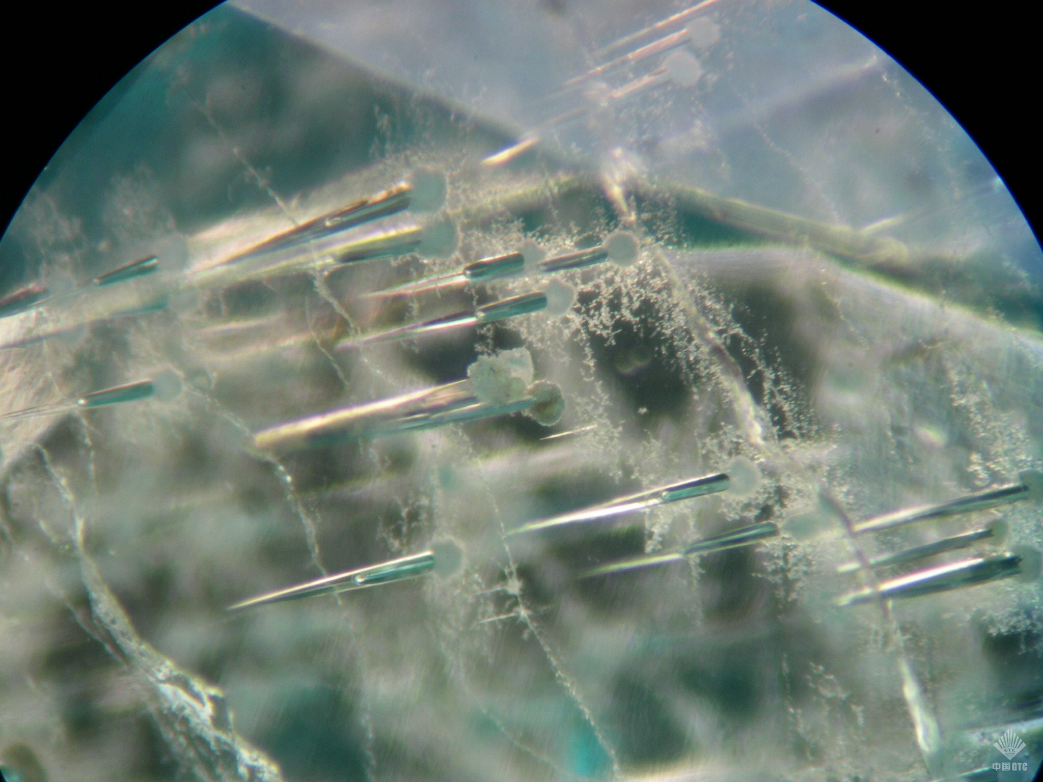 其中对包裹体特征的观察,是鉴定宝石的关键,可以应用于鉴定宝石种属、辨别天然宝石与人工宝石、研究宝石成因及判断产地等。“钉状”包体,合成祖母绿中典型包体