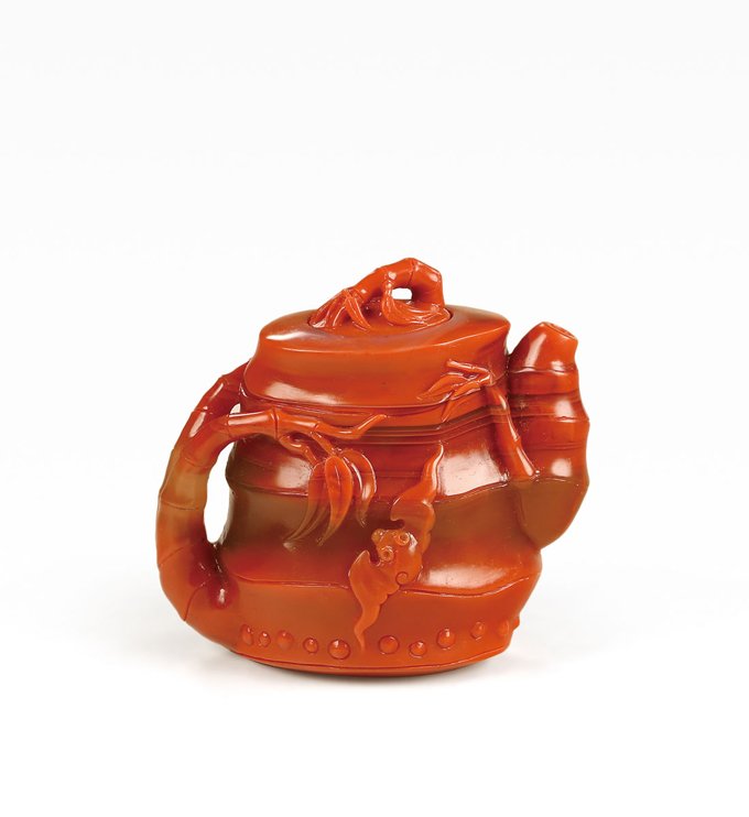 红颜色与白色相伴生,比如常见的红白蚕丝料,其中红白分明者罕见,通过巧妙的设计雕刻,可达到意想不到的艺术效果。