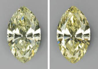 美国新墨西哥州东南部卡尔斯巴德实验室检测到一粒0.31ct带有淡绿色调的浅黄色马眼形钻石。该钻石显示强黄色荧光,并有持久的黄色磷光,以及绿色调的变色现象。