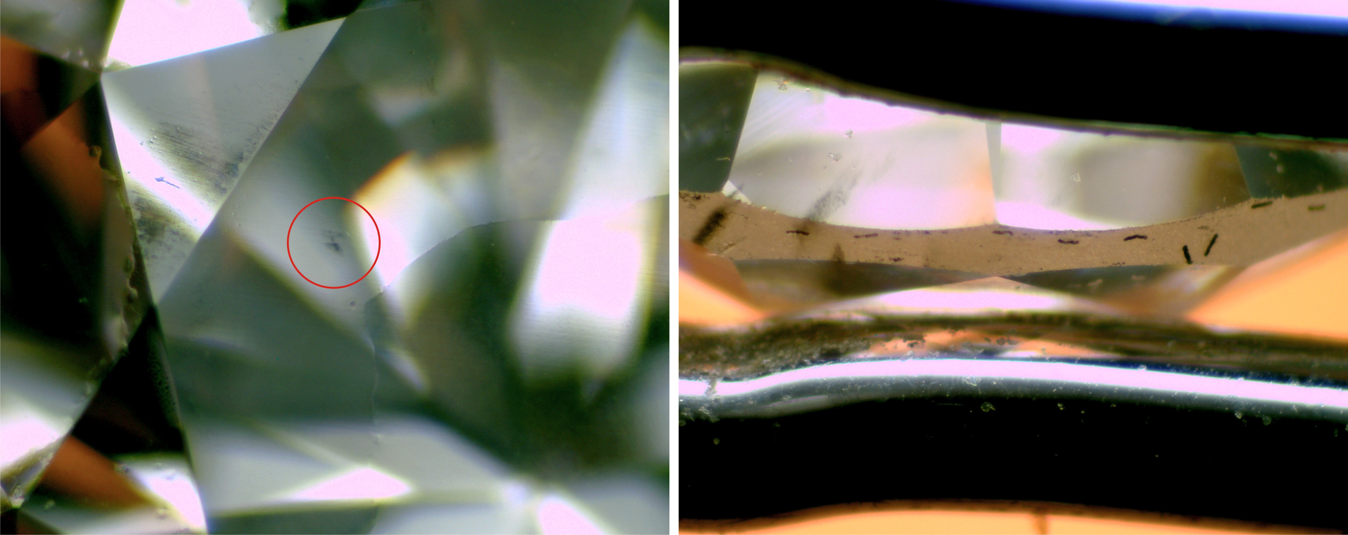 | 2 | 0.32 | J | SI2 | 黑色包体、羽状纹 | 无 | 弱黄色 |