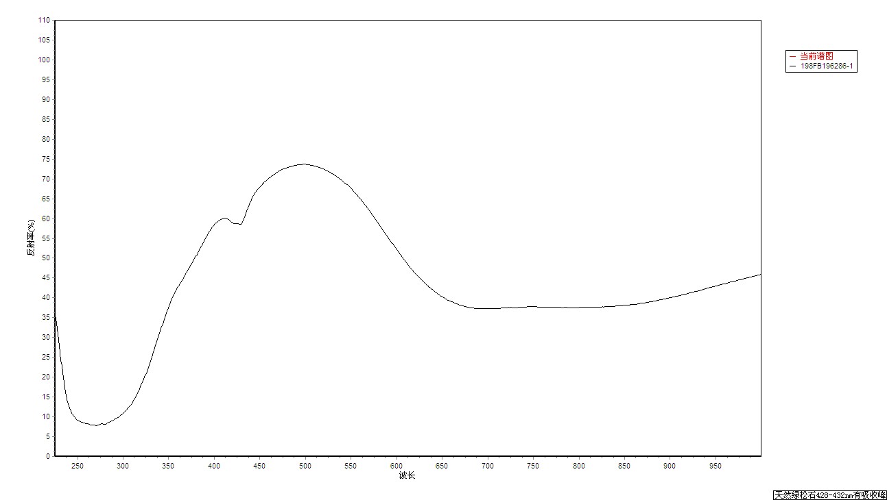 采用GEM-3000珠宝检测仪对样品进行测试,可见428nm强吸收峰。