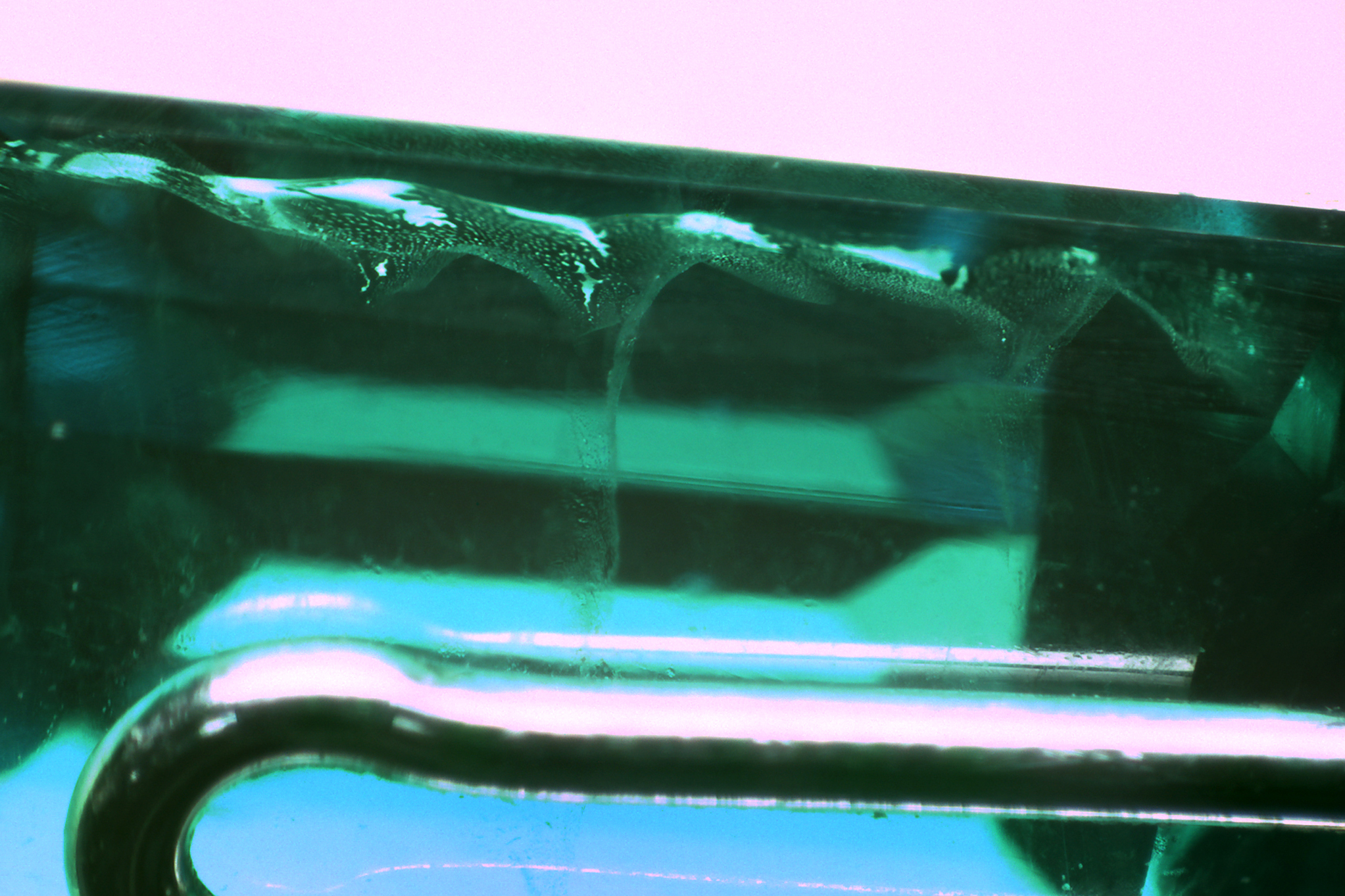 购置于2016年6月香港珠宝展。日本“再结晶”合成祖母绿,商家声称由天然哥伦比亚祖母绿粉末为原料再结晶合成。(图1)